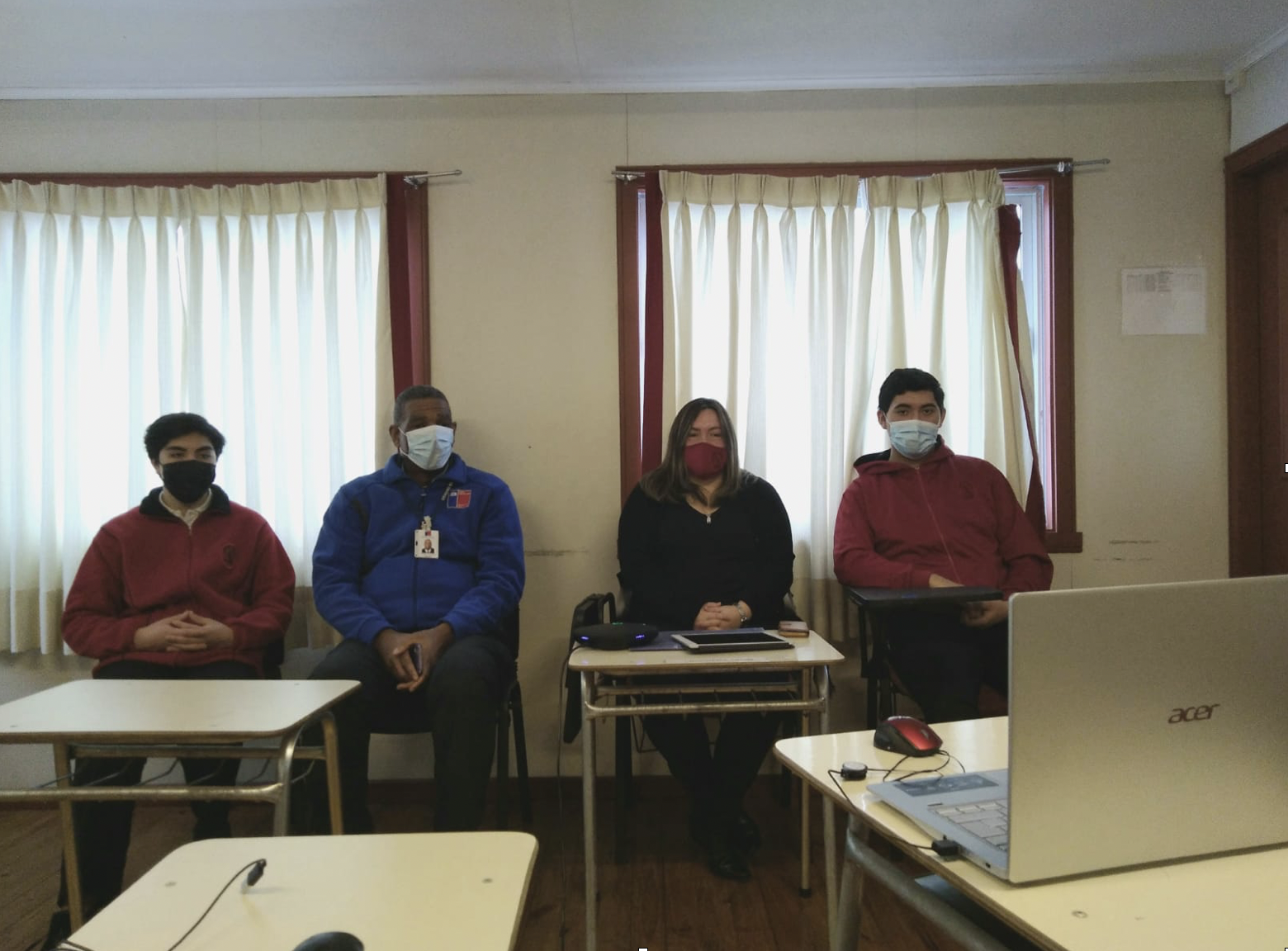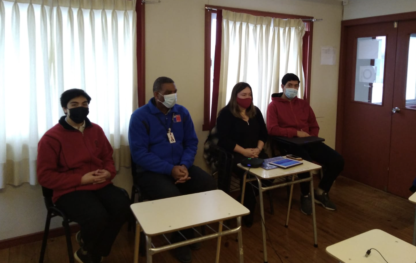 En la reunión realizada en las dependencias de nuestro colegio participaron Miguel Pinto, alumno de 4° medio, Carlos Silva, Alumno de 3° medio y la encargada de la cuadrilla sanitaria Miss Cinthia Ferrada, además en esta reunión participo Keith Hood, SEREMI de salud de nuestra región.